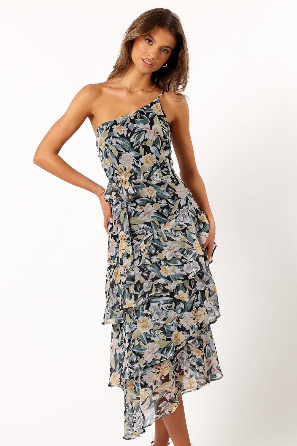Petal & Pup Women’s Amelie One Shoulder Midi Dress(Olive)