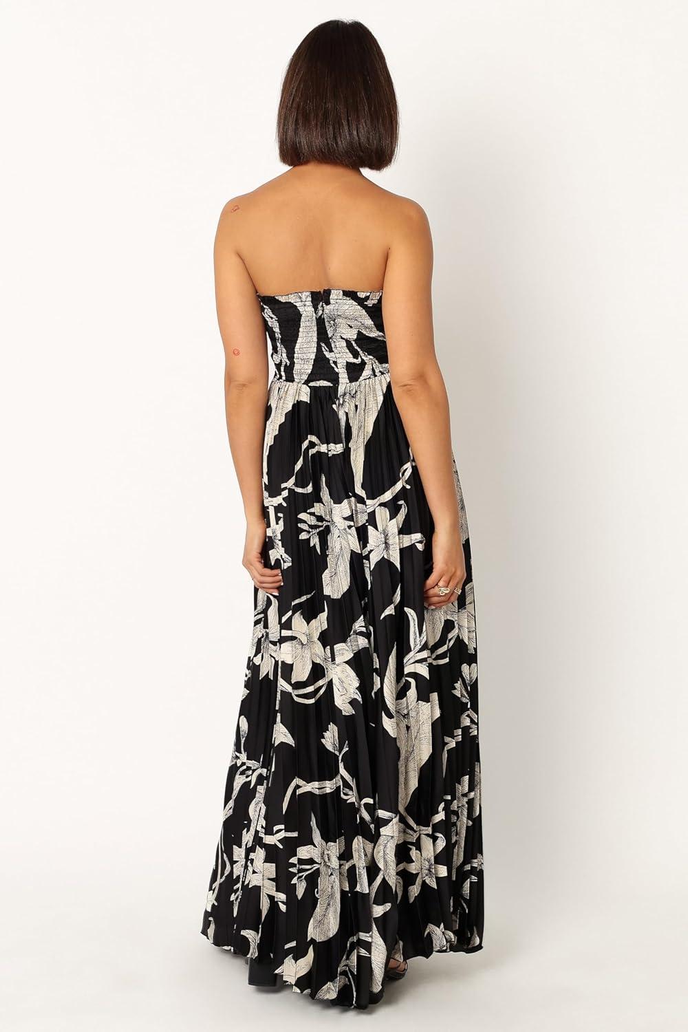 Petal & Pup Women’s Angelique Strapless Maxi Dress(Black Floral)