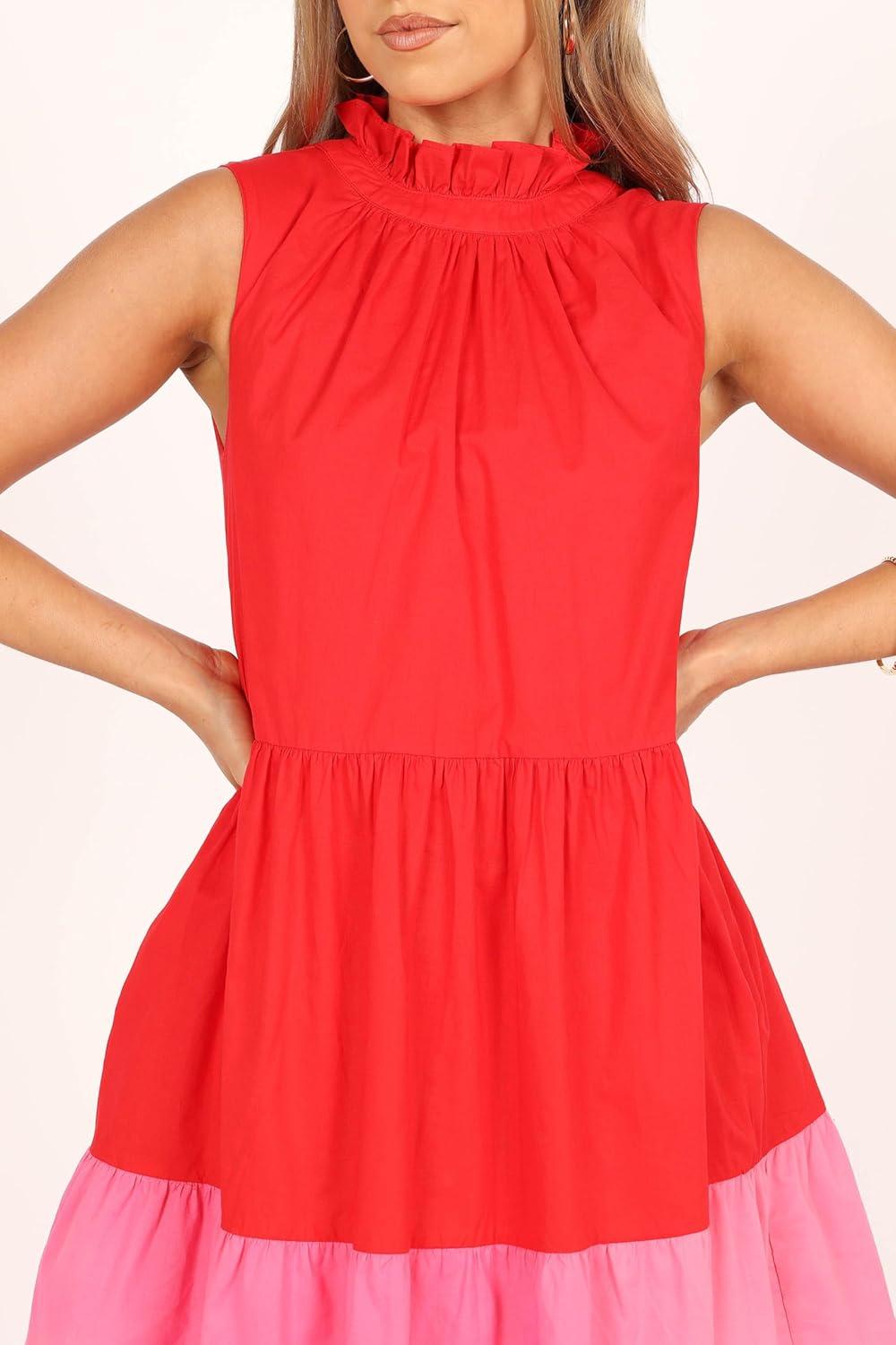 Petal & Pup Women’s Bradshaw Tiered Mini Dress(Red/Pink)