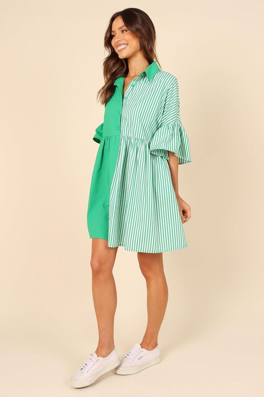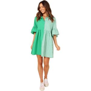 Petal & Pup Women’s Didi Frill Mini Dress(Green Stripe)
