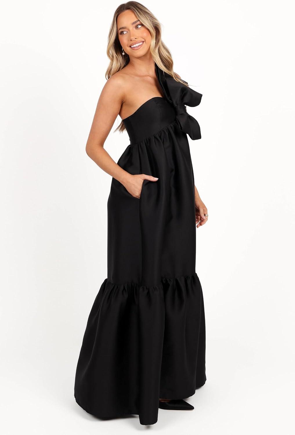 Petal & Pup Women’s Nadia One Shoulder Maxi Dress(Black)