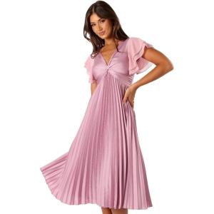 Petal & Pup Womens Nova Flutter Sleeve Midi Dress(Dusty Rose)