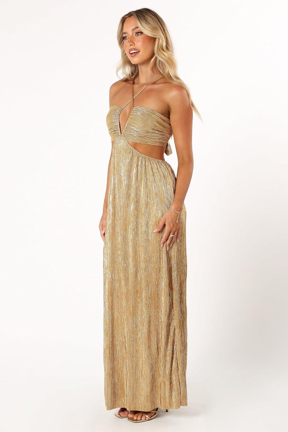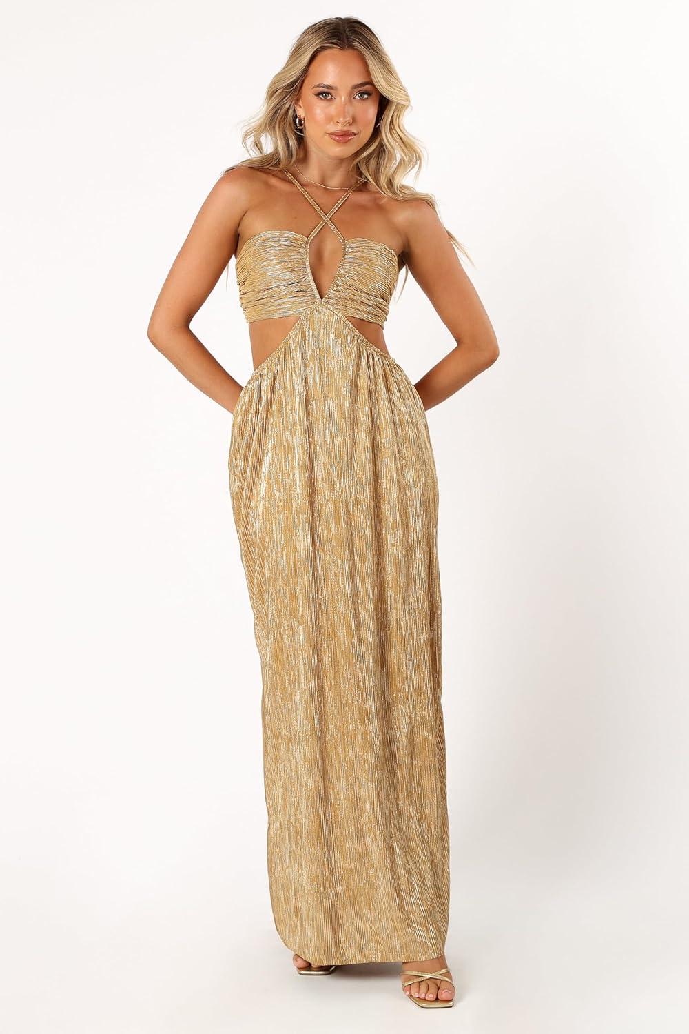 Petal & Pup Women’s Liza Pleated Maxi Dress(Gold)
