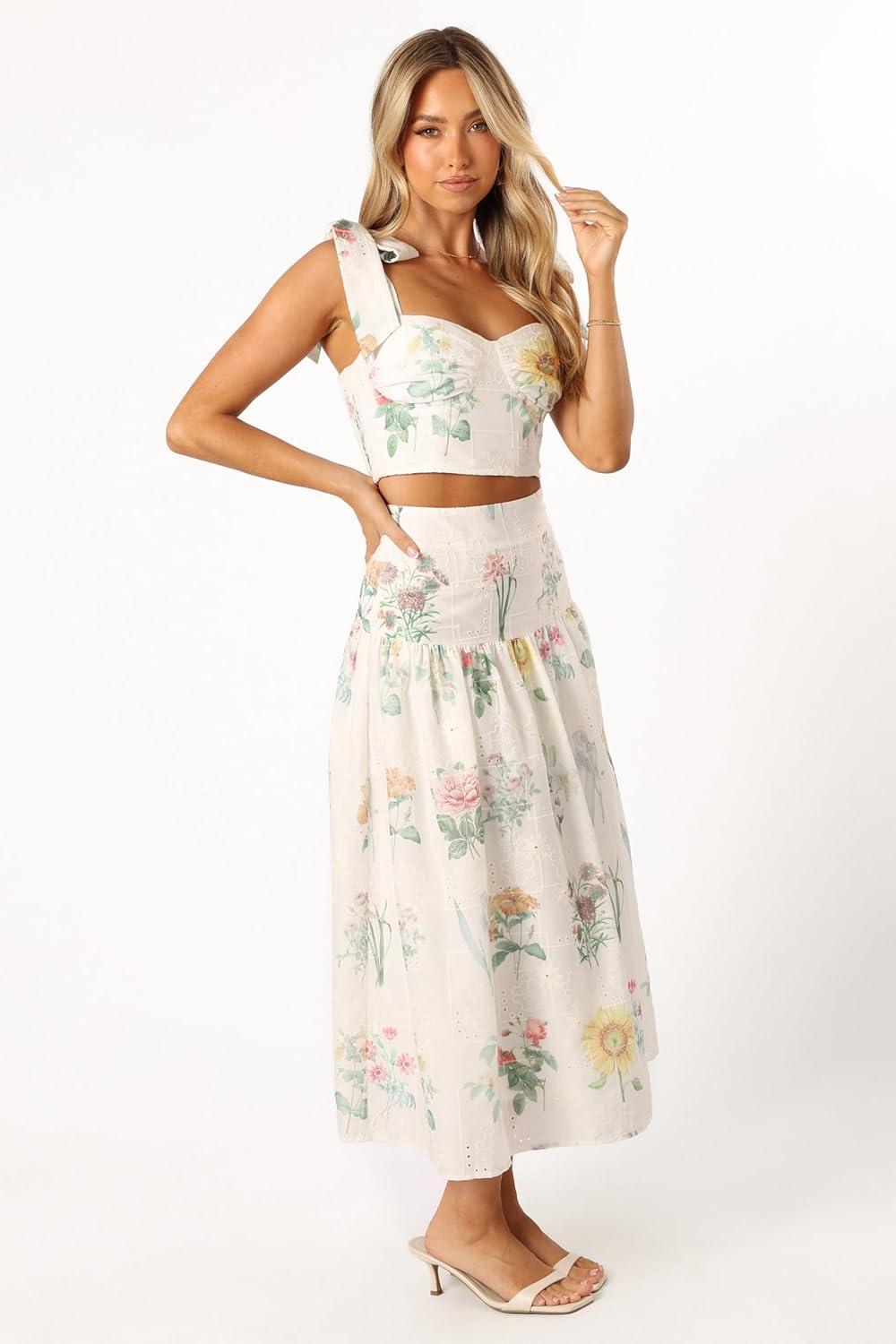Turn heads with our playful and trendy top and skirt set! The cropped top features adjustable tie shoulder straps that let you decide your fit and a sweetheart neckline that flatters everyone. The high-waisted midi skirt cinches your waist and flows beautifully with every step you take.