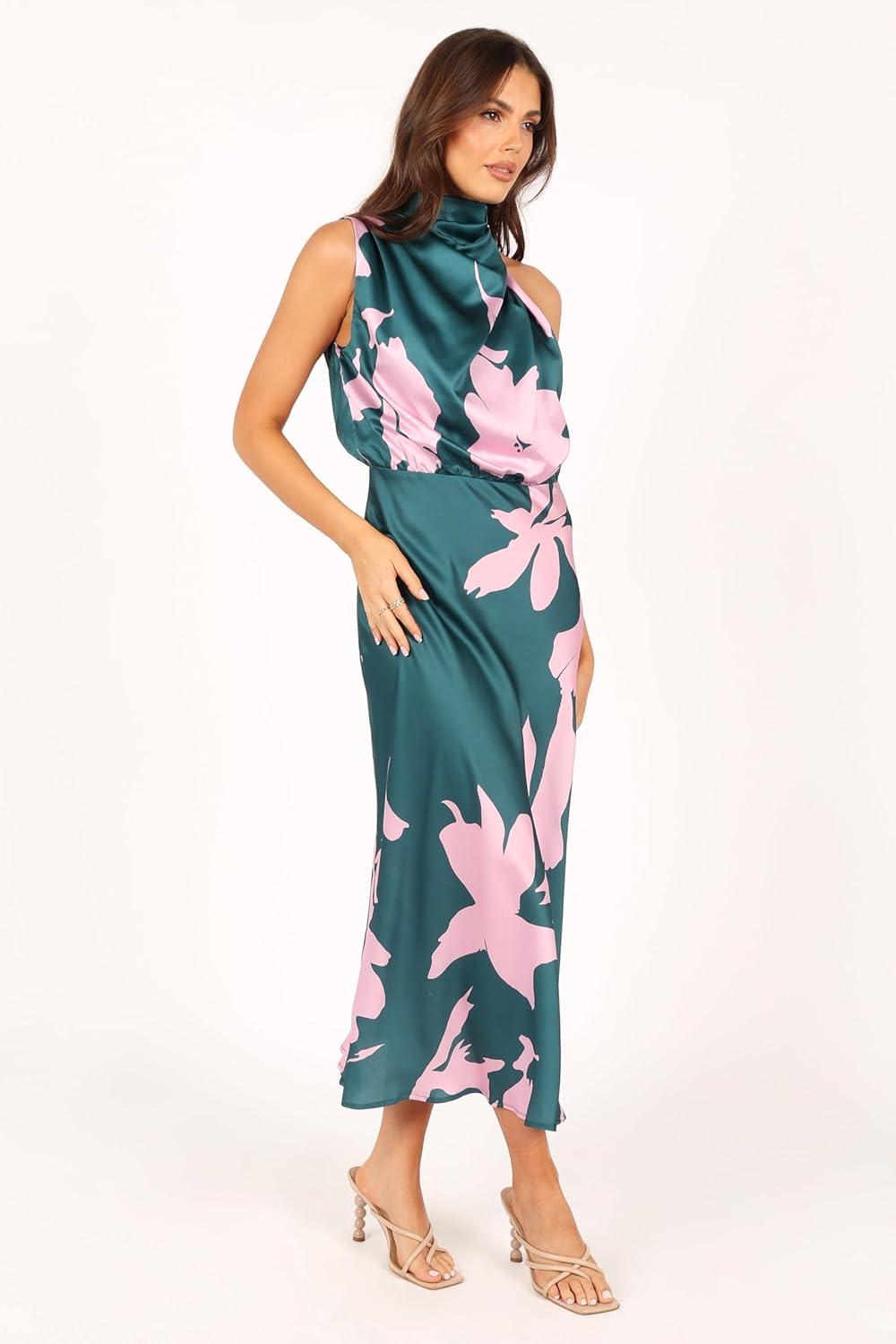 Petal & Pup Womens Anabelle Halter Neck Midi Dress(Green Pink)