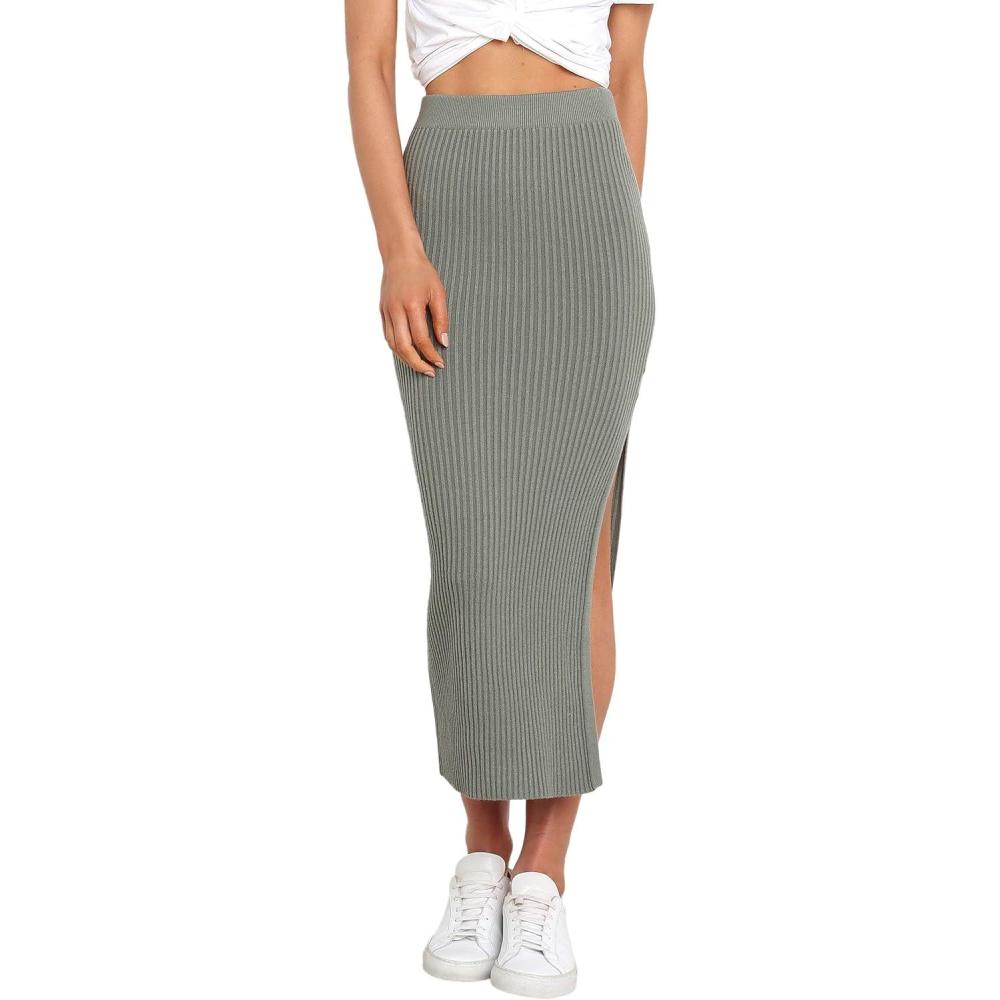 Make a fashion statement in this must-have midi-length skirt! Crafted from stretch ribbed knit for an easy fit, its elasticized waistband ensures maximum comfort and style. With a side split feature to show off your legs, you'll be sure to turn heads when you wear it.