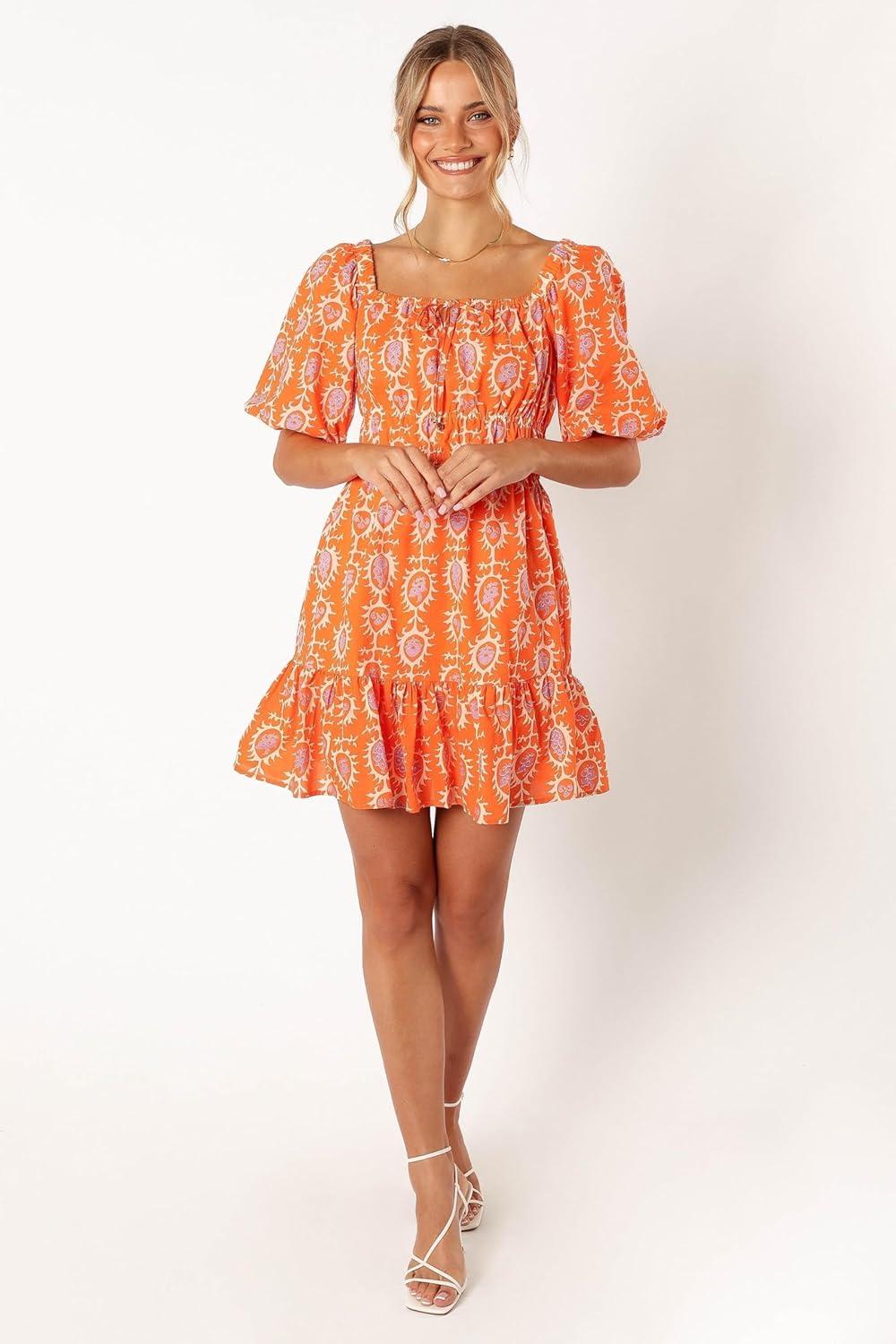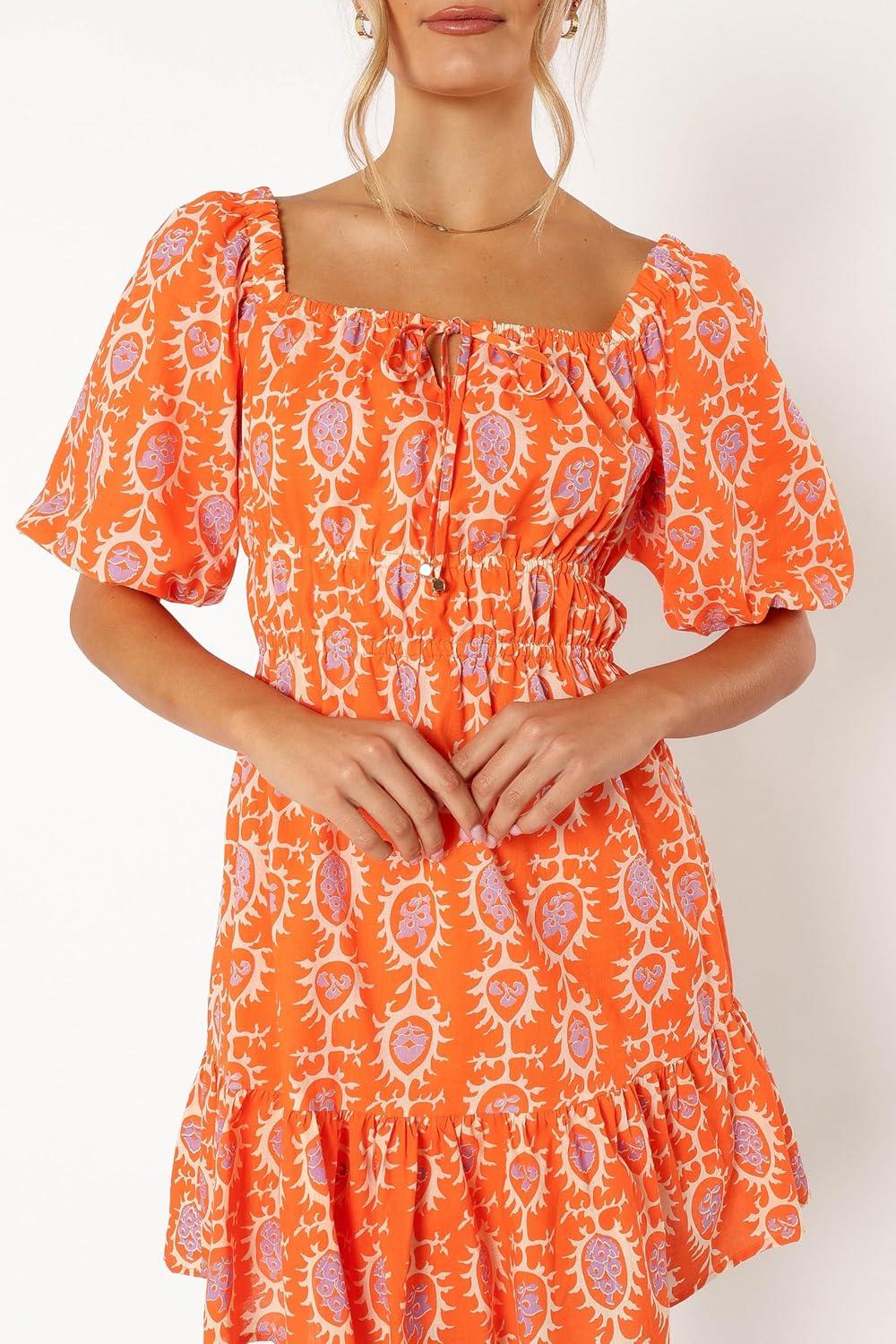 Petal & Pup Women’s Carmen Off Shoulder Mini Dress(Orange Print)