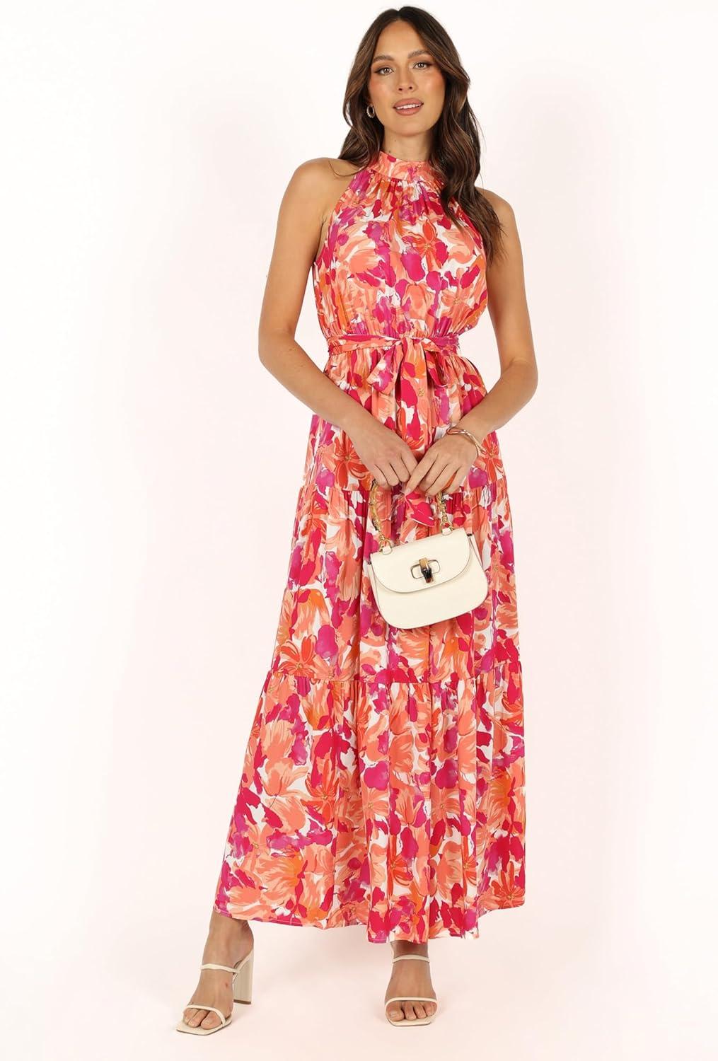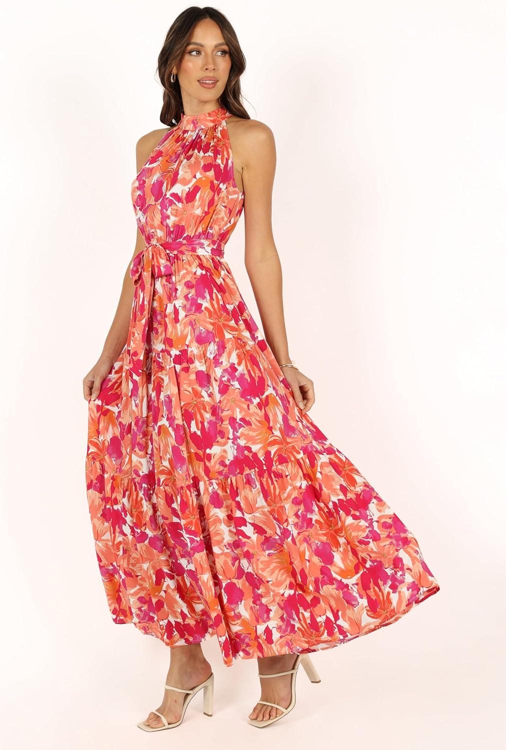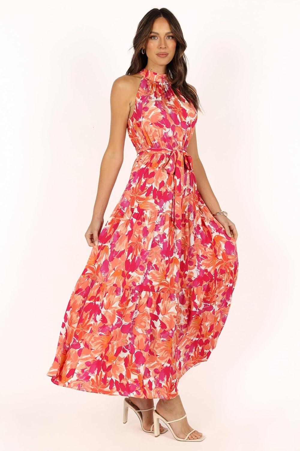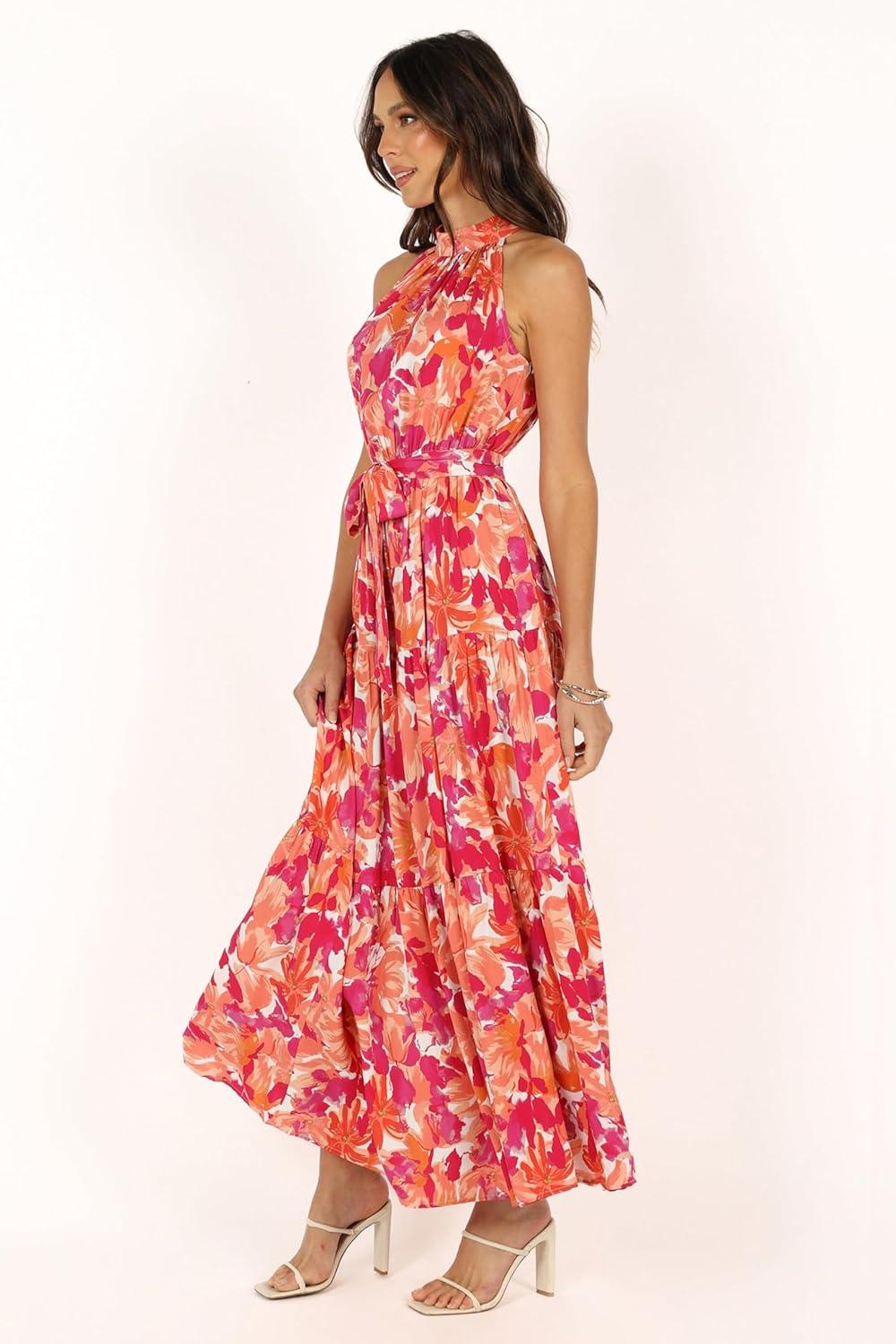 Petal & Pup Women’s Caroline Maxi Halter Dress(Red Orange)