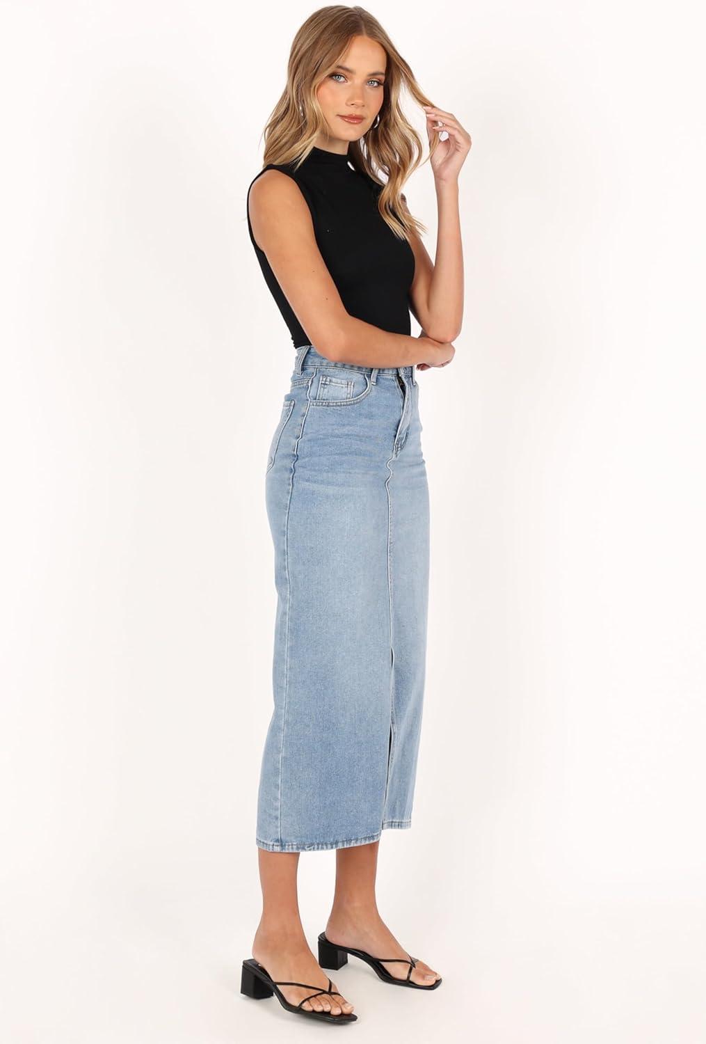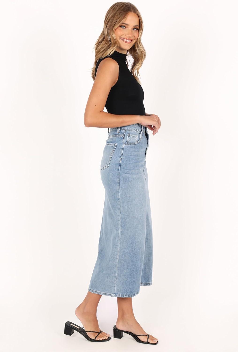 Petal & Pup Women’s Dana Denim Midi Skirt(Blue Wash)