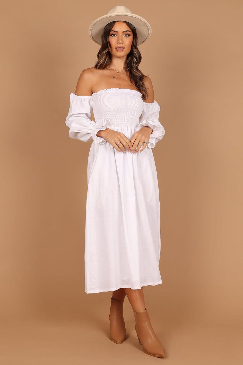 Be the first to review “Petal & Pup Women’s Domenica Shirred Long Sleeve Midi Dress(White)”
