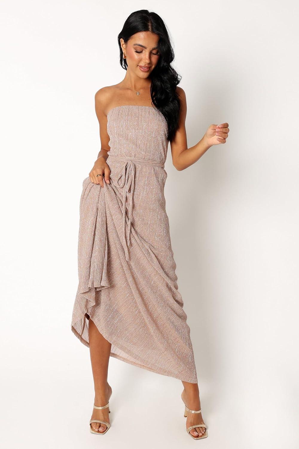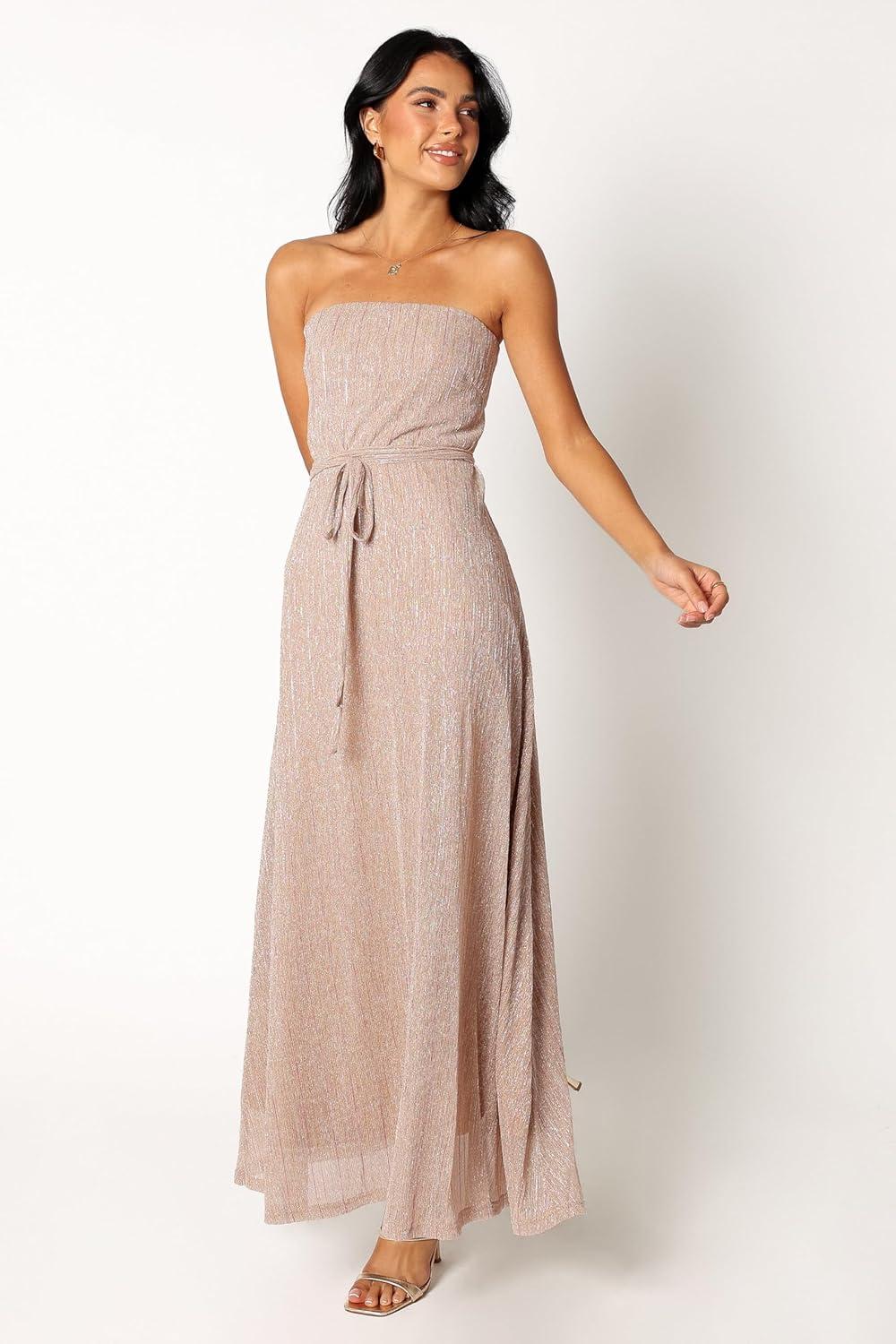 Petal & Pup Womens Farley Strapless Maxi Dress(Rose Gold Stripe)