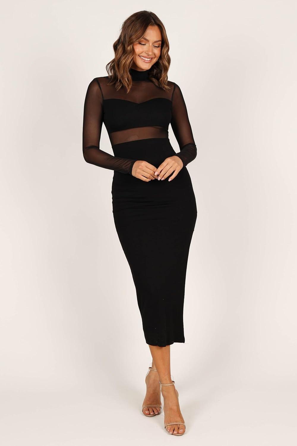 Petal & Pup Womens Farrow Long Sleeve Midi Dress(Black)