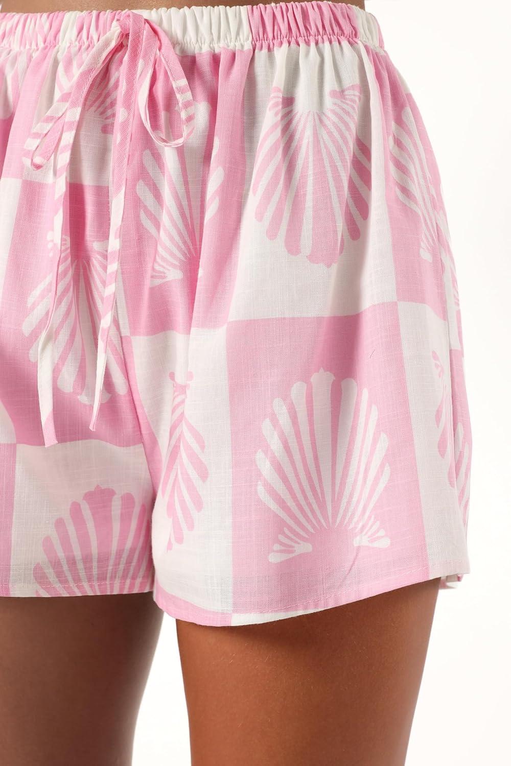 Say hello to summer with this fun top and shorts set! This two-piece ensemble features a spread collar, v neckline, short sleeves, and front functional button close. The high waisted style shorts come with an elasticized waistband and functional tie detail for added charm.