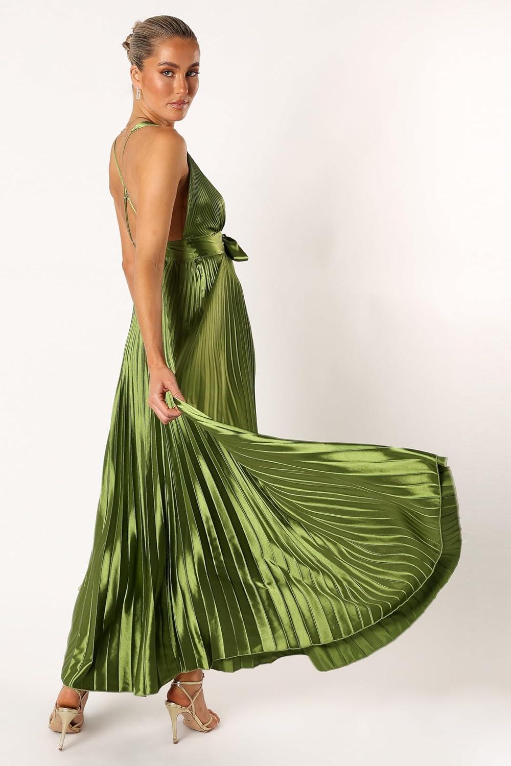 Petal & Pup Women’s Kris Pleated Maxi Dress(Martini Olive)