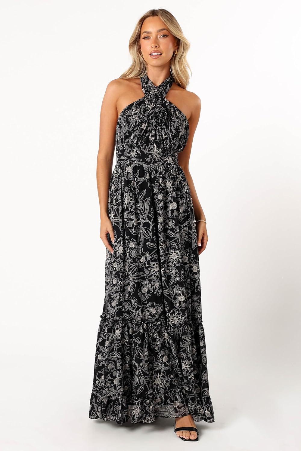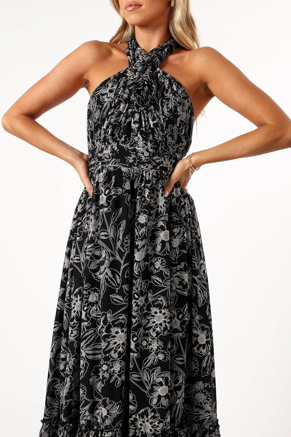 Petal & Pup Women’s Lennon Halterneck Maxi Dress(Black Floral)