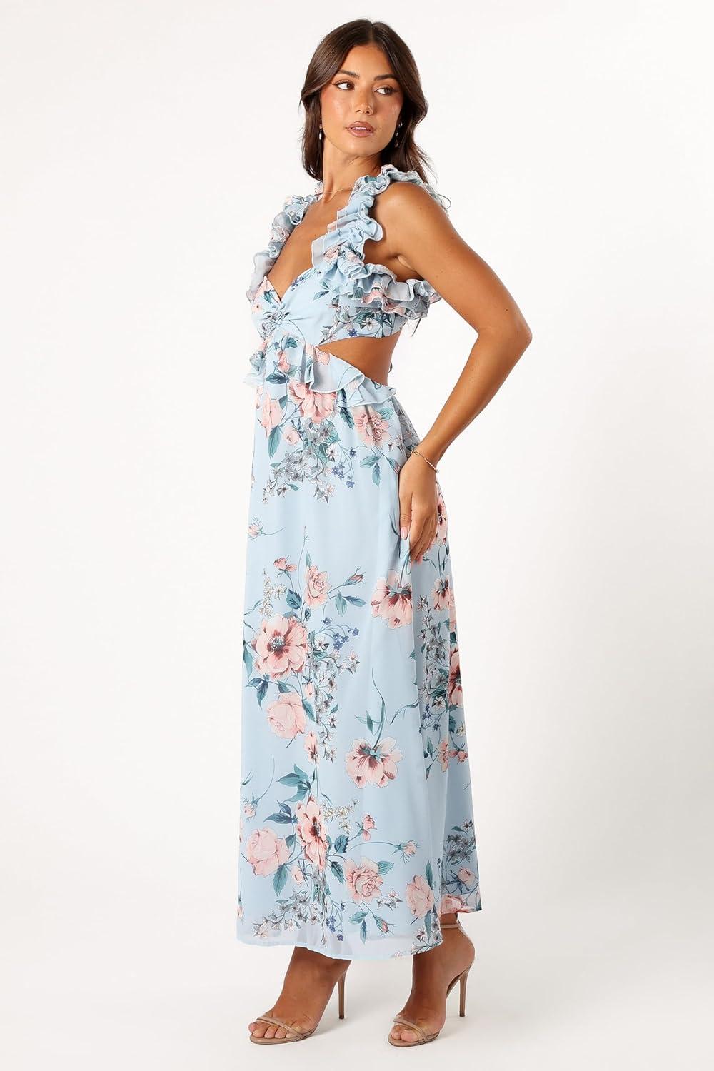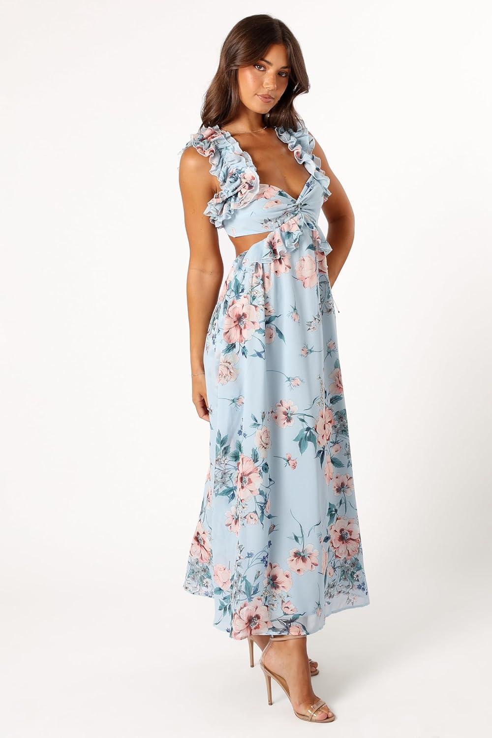 Petal & Pup Womens Lucah Frill Shoulder Maxi Dress(Blue Floral)