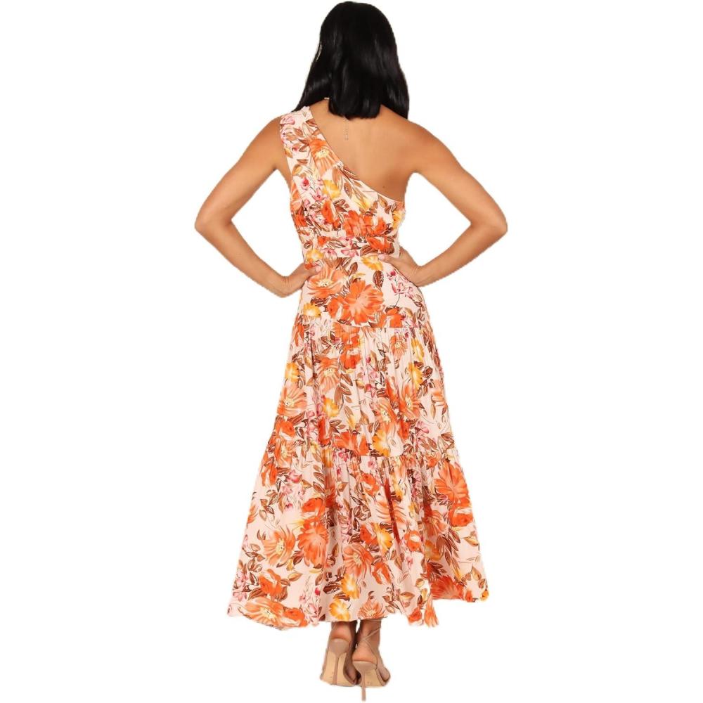 If you're looking to make a statement this season, then our one shoulder maxi dress should be at the top of your list. This stylish piece features a knot detail on the shoulder strap, an invisible side zip and a drop tier design with a large floral print.