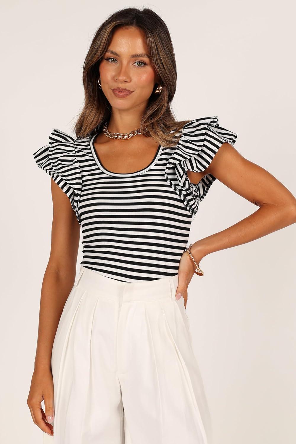 Petal & Pup Women’s Martina Ribbed Top(Black Stripe)
