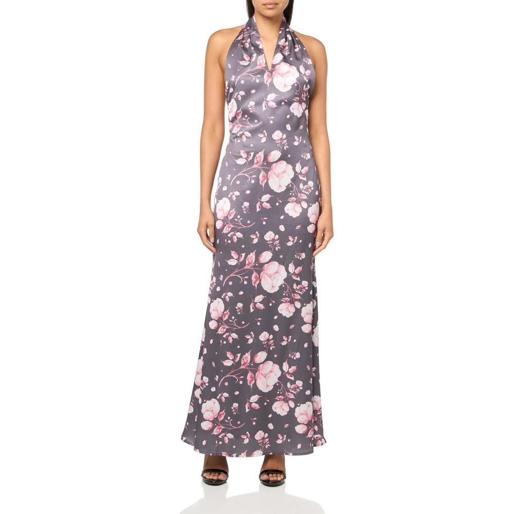 Petal & Pup Women’s Mila Halterneck Maxi Dress(Steel Gray Floral)