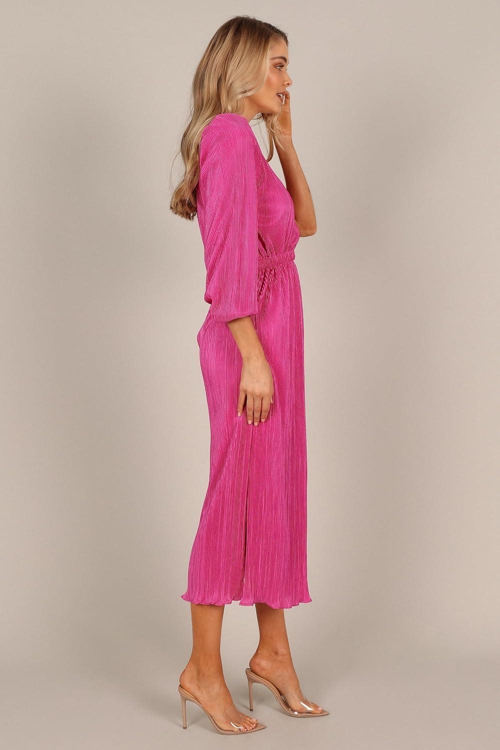 Petal & Pup Womens Pontee One Shoulder Pleated Midi Dress(Orchid)