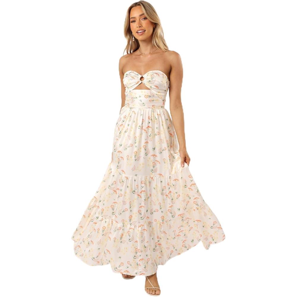 Sway into summer in style with this beautiful maxi length dress! Show off your curves with a sweetheart neckline, ring detail on the bust and a cut out feature under the bust. With an invisible side zip and hook and eye clasp for easy wear, you'll be ready to take on any party!