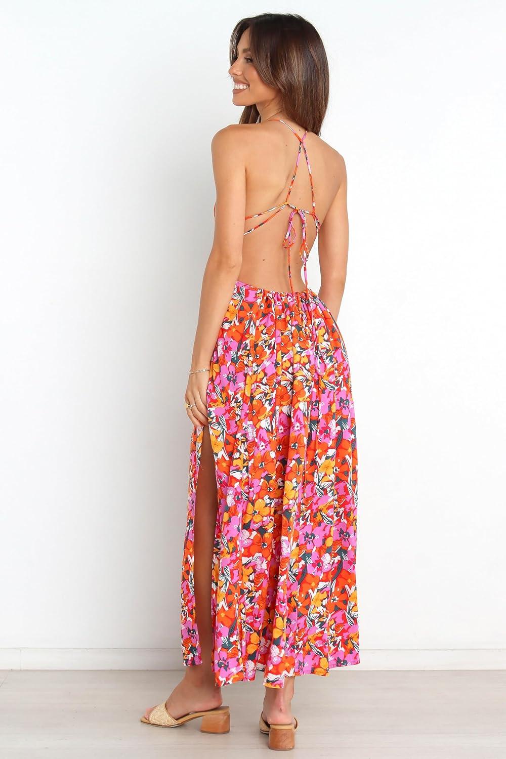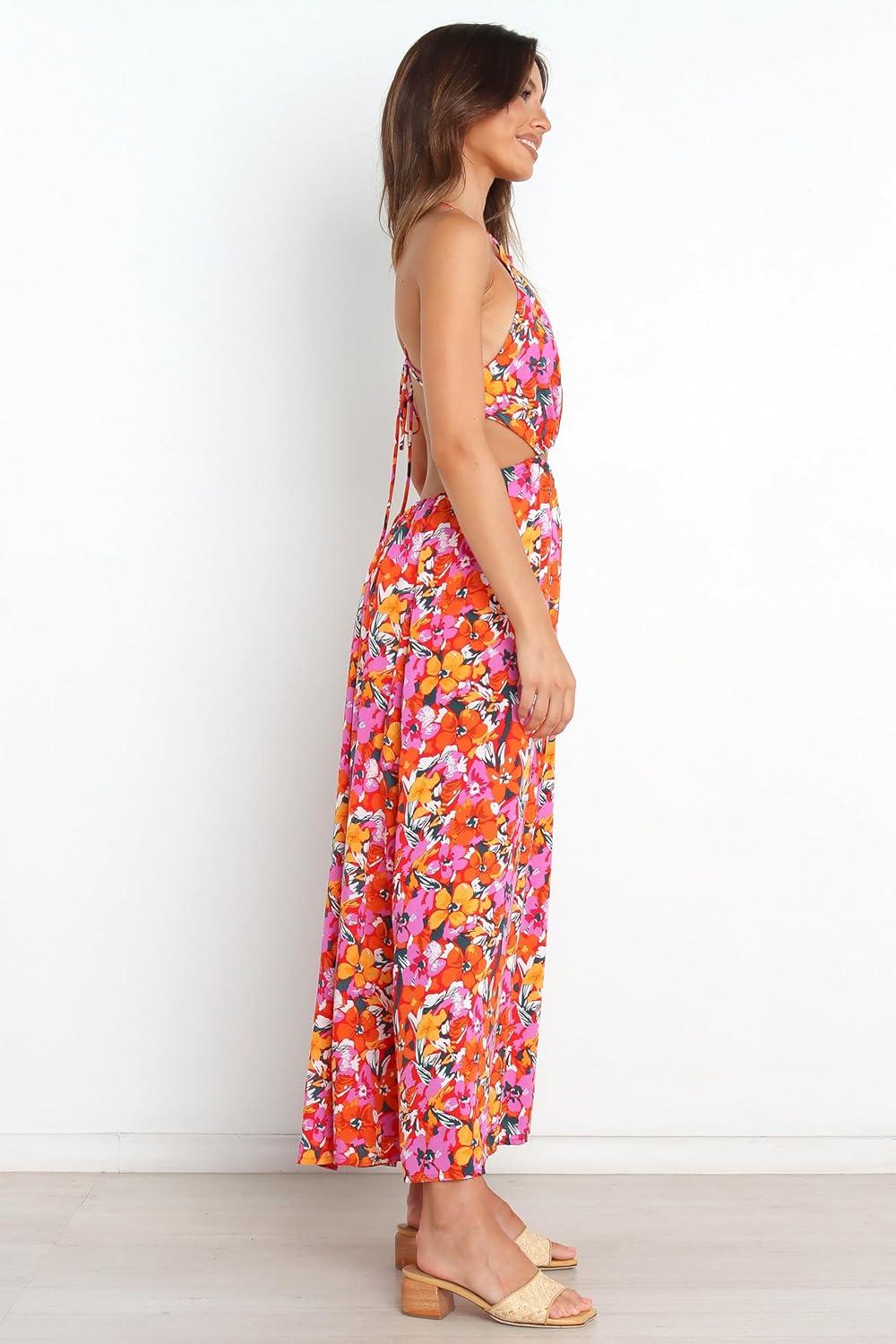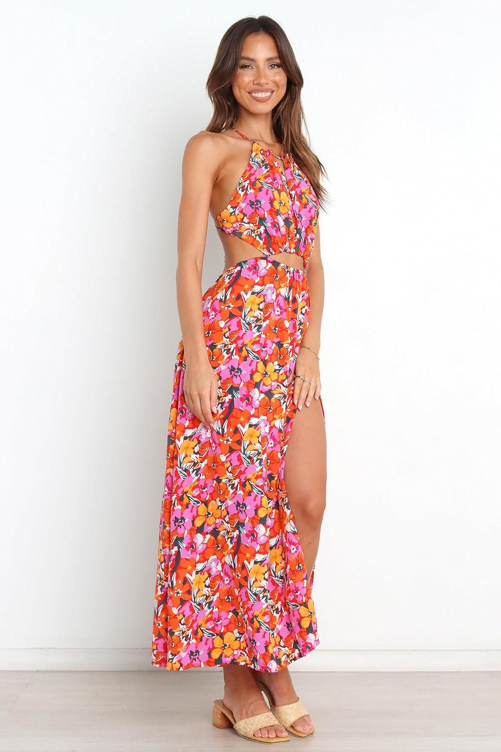 The Senorita Dress will turn heads with the floral print and fun silhouette. The maxi length will elevate your look while the halter neckline, waist detail and leg split add a touch of stylish femininity. The open back is eye catching and unique so you will be feeling like your most elegant self!