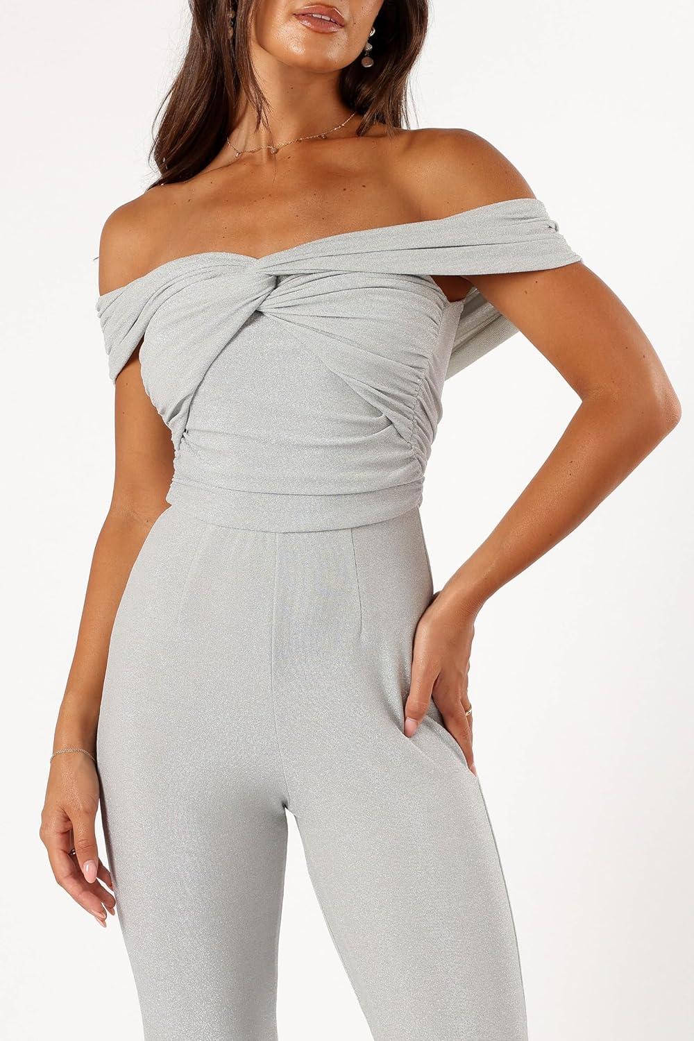 Petal & Pup womens Sharnie Off Shoulder Jumpsuit(Silver)