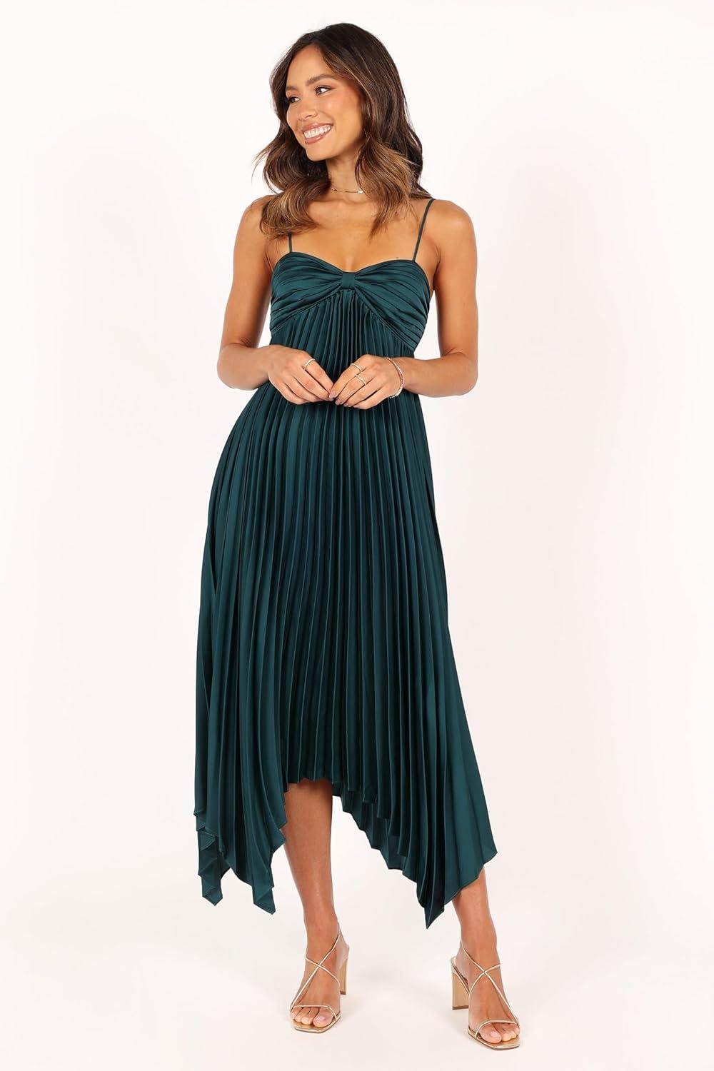 The Vikki Dress flatters any figure with its midi length, sweetheart neckline and asymmetrical hemline. Thin adjustable straps ensure the dress fits perfectly and is sure to turn heads. If you are in between sizes, we suggest selecting the size down due to the relaxed fit of this dress.