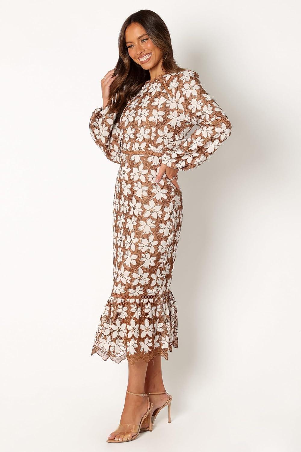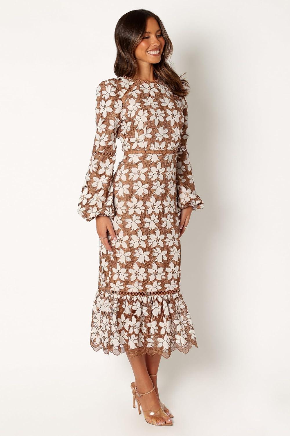 • Petal & Pup Women’s Pierre Long Sleeve Lace Maxi Dress(Mocha)
